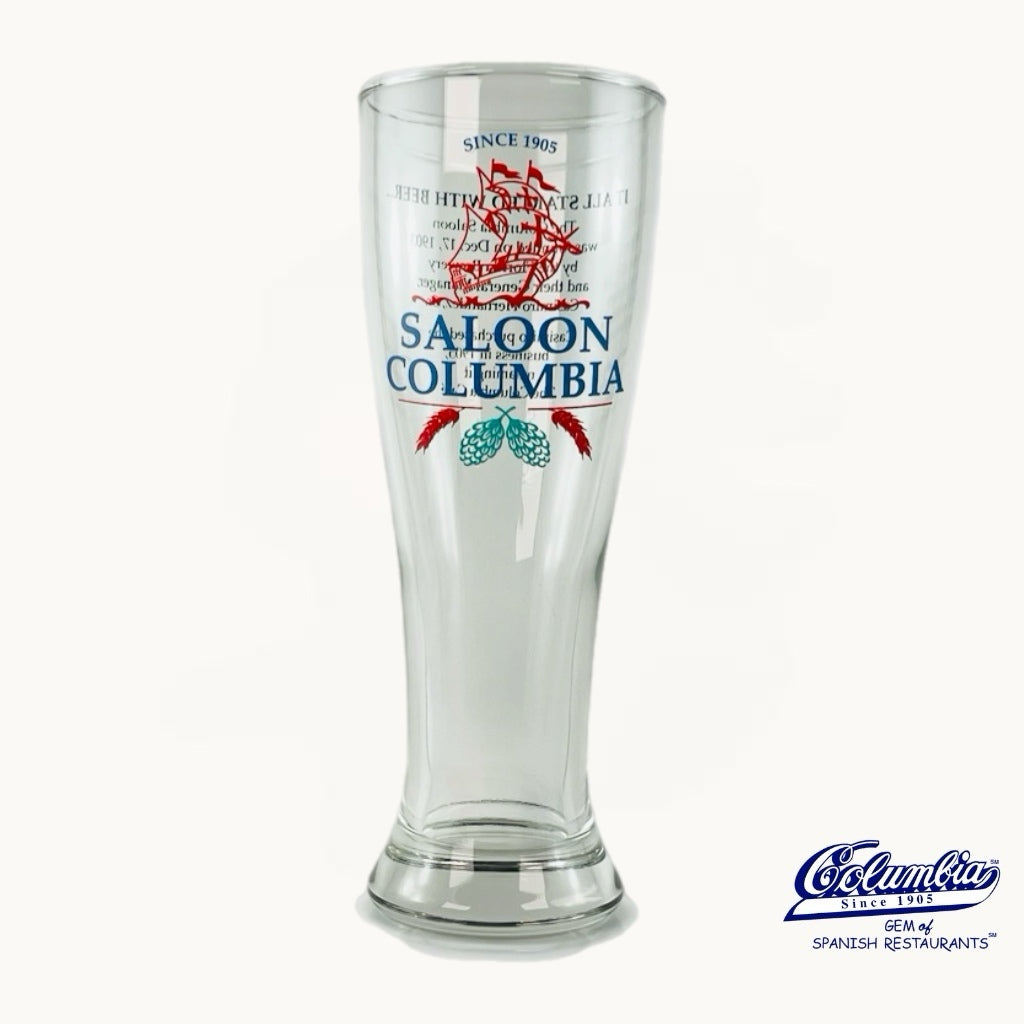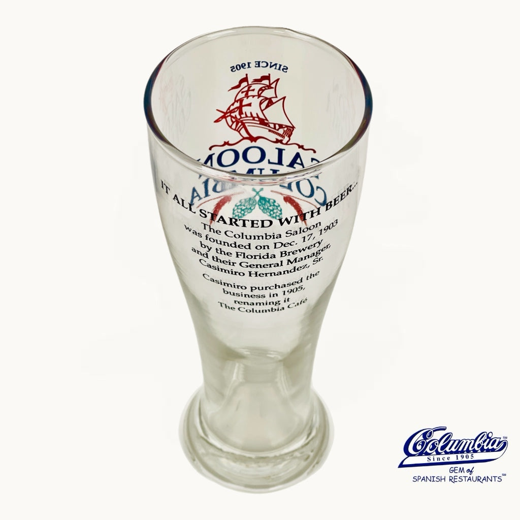 Enjoy your favorite beer with the Columbia Saloon beer glass. Designed with the original Columbia Saloon Logo! Designed to enhance flavor and presentation, it is ideal for a variety of beer styles.